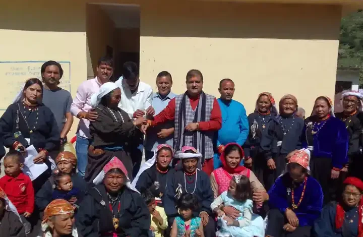 चमोली में जनजातीय महिलाओं के बीच पहुंचे बीजेपी प्रदेश अध्यक्ष महेंद्र भट्ट, बंधवाई राखी